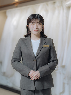 私たち衣装スタッフはおふたりのご希望に添えるよう、精一杯お手伝いさせていただきます。たくさんの素敵な衣装とともにお待ちしております。より一層輝ける、最高の一着を一緒に見つけましょう。
